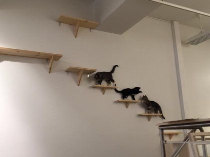 Näin noustaan pitkin seinää kissakahvilassa