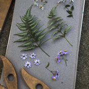 Ruohosipulia Erja suosittelee istuttamaan niin runsaasti, että osan voi kerätä syötäväksi, osan antaa kukkia perhosia varten. Laventelia hän ylistää kaikin puolin ihanaksi kasviksi, joka tuoksuukin taivaalliselta.