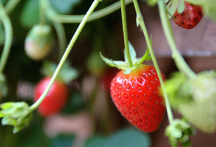 Hoida amppelimansikkaa hellästi, niin saat nauttia itse kasvatetusta sadosta pitkälle syksyyn.