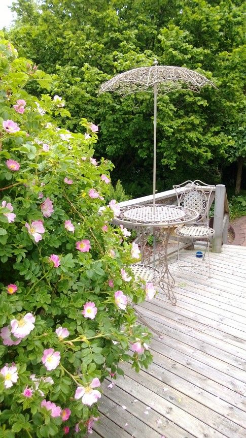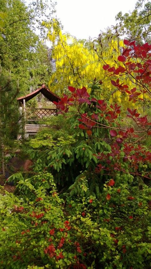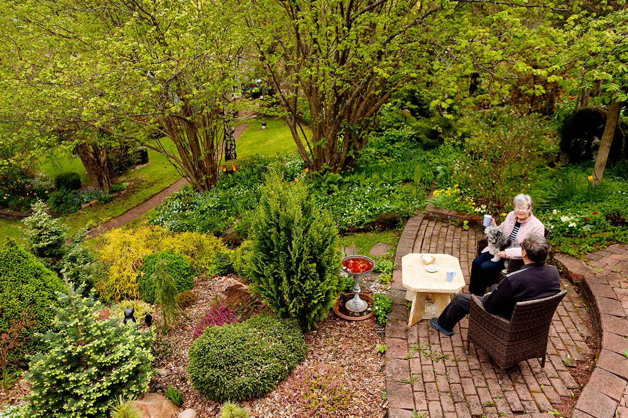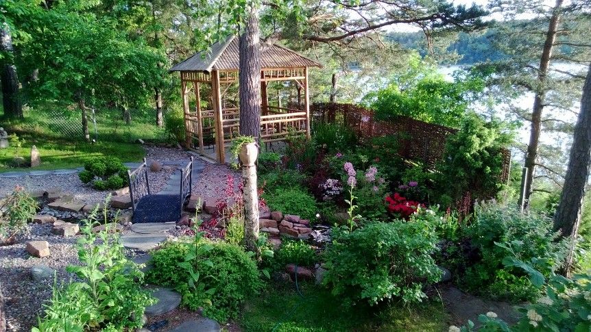 Britt-Mari ja Clas Rosenbladin puutarha Ahvenanmaalla on luonnonläheinen ja itämaishenkinen. Sen erikoisuutena ovat tunnelmaltaan erilaiset istumapaikat.