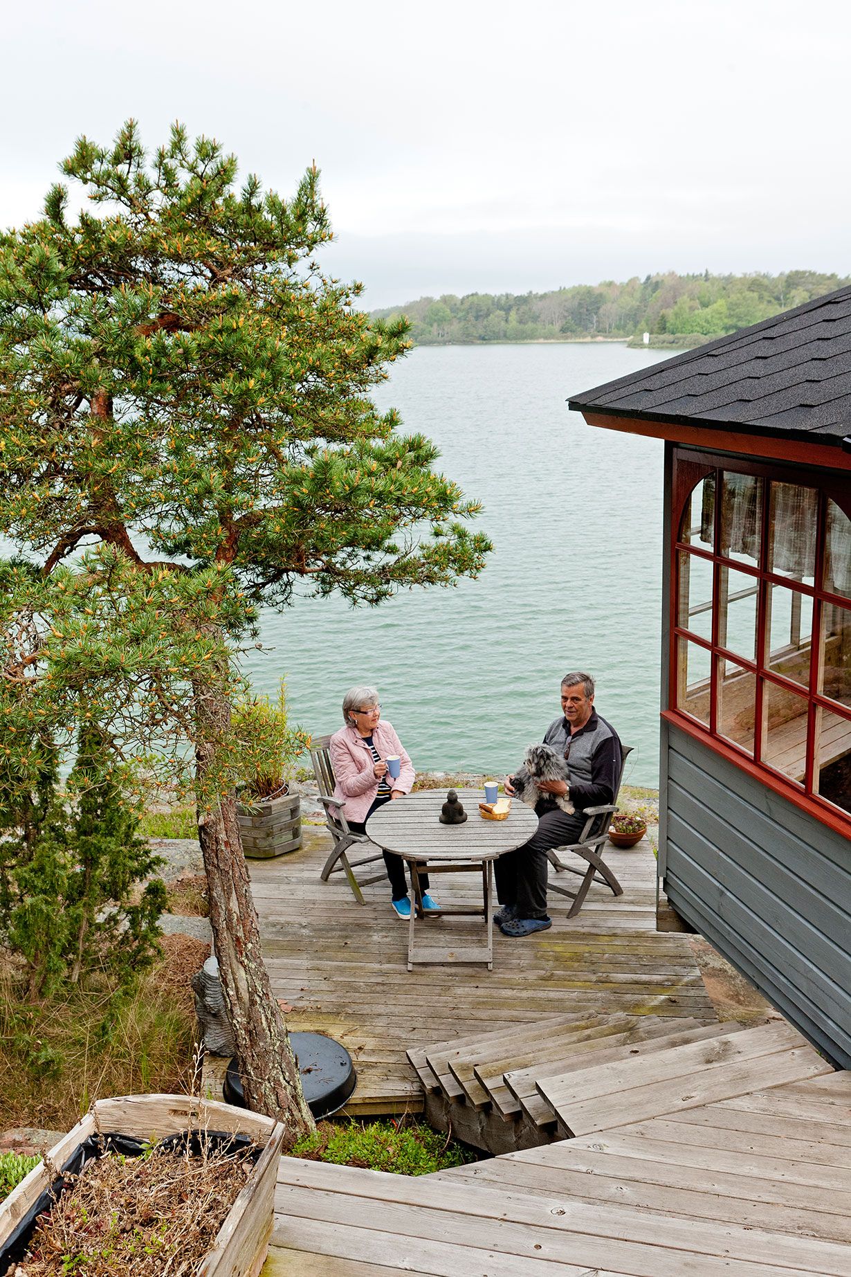 Mikä rauha, mitkä maisemat! Britt-Mari ja Clas Rosenbladin mökki Lemlandin Björkuddenissa on kuin hyllyllä ylhäisessä yksinäisyydessään, katse yli meren Maarianhaminaan.