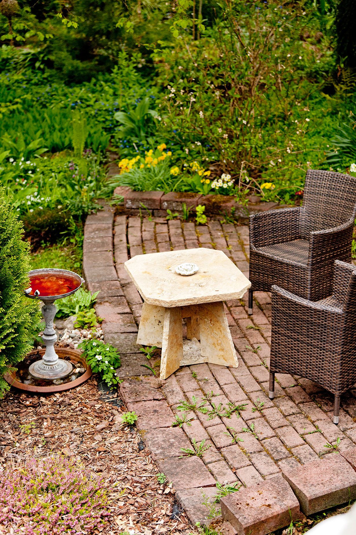 – Kun näen kivan patsaan, tiedän heti, mihin se päätyy puutarhassa. Patsaat sopivat hyvin kasvien seuraksi, Britt-Mari sanoo.