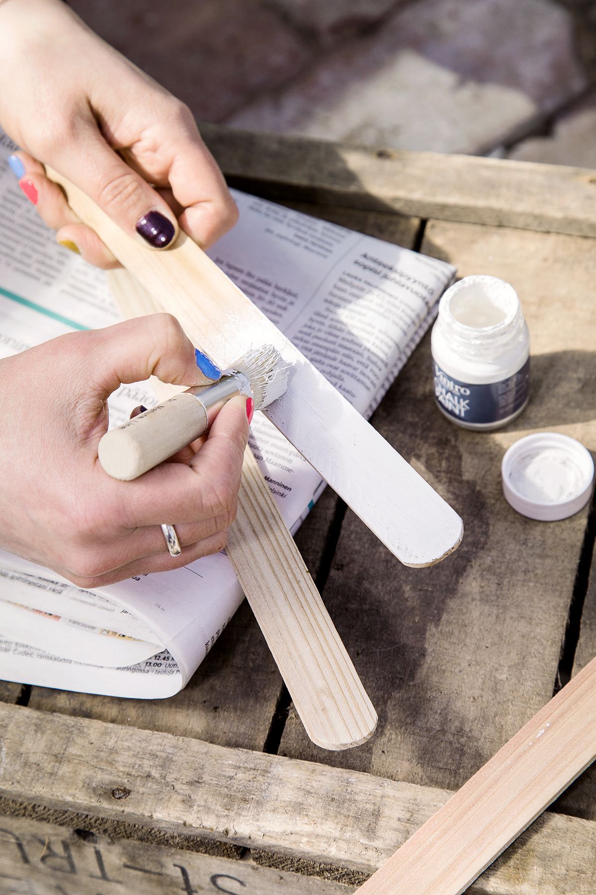 - Maalaa tikut vaalealla maalilla ja anna kuivua.