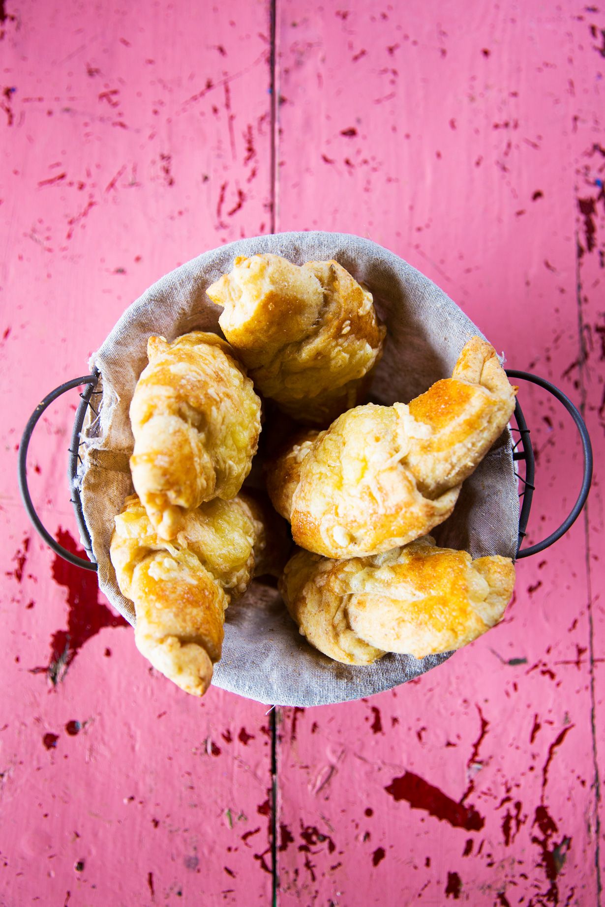 5. Laita jokaiselle palalle nokare täytettä ja kääri sarviksi.