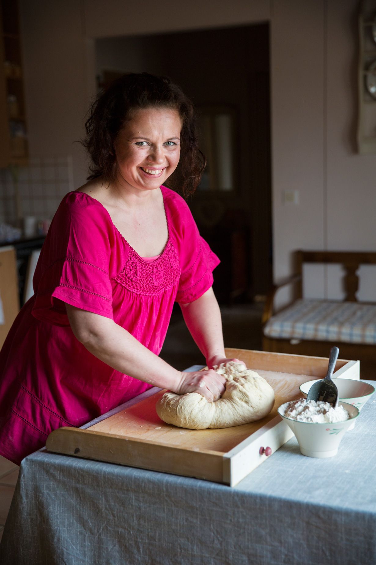 – Asun äidin vanhalla kotitilalla. Lapsena asuin Lahdessa mutta olin täällä kesäisin ja opin Lyyli-mummulta pullanteon jo alle kouluikäisenä. Nyt mummu, 86, asuu kirkolla ja viemme hänelle usein pullapitkon lämpimäiseksi, Katri kertoo.