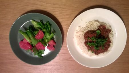Gulassi valmistui nopeasti jauhelihasta. Ruokakassissa mukana olleet meirami ja juustokumina maustivat ruuan hyvin, paprikajauhetta oletettiin kokilla olevan kaapissa jo ennestään. Tulos oli maukas.