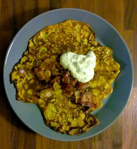 Tulihan siitä lopulta lettutaikina, ja ihan herkullinen lopputulos. Pekoni teki annoksesta ruokaisan, mutta persiljakastike ei olisi kaivannut valkosipulia - sen maku peitti liikaa alleen muita makuja.
