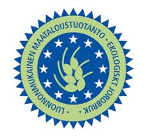 Kertoo sekä tuotteen kotimaisuudesta että luonnonmukaisesta tuotantotavasta.