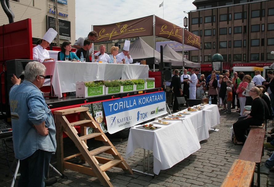 Kokataan torilla -kilpailussa testaan ravintoloiden henkilökunnasta koostuvien joukkueiden taito kokata aineksista, jotka löytyvät torilta.