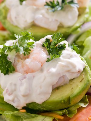 Katkarapusalaatilla täytetyt avokadot