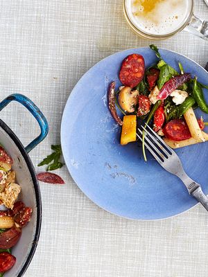 Sadepäivän pasta-chorizosalaatti