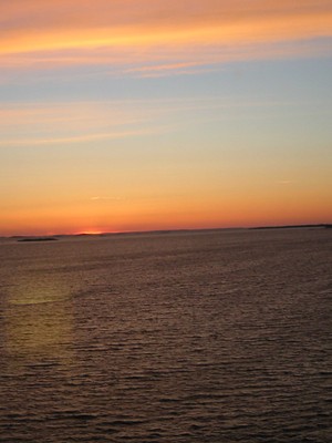 Auringon laskiessa.