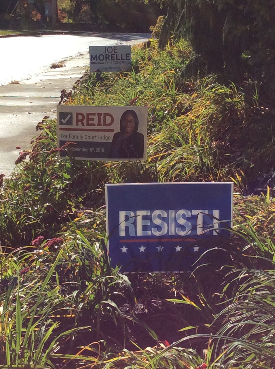Aikaisempina vuosina on naapureillamme aina ja meilläkin joskus ollut ehdokkaiden vaalimainoksia nurmikoillaan, mutta tänä vuonna sain kävellä monta korttelia ennenkuin löysin nuo kolme, joista on kuvat ylhäällä. Niistä kaksi tuntuu olevan demokraattien ja yksi republikaanien kannattajien pihalla. Televisiomainokset tuntuvat olevan ylivoimaisesti yleisin tapa saada julkisuutta.
