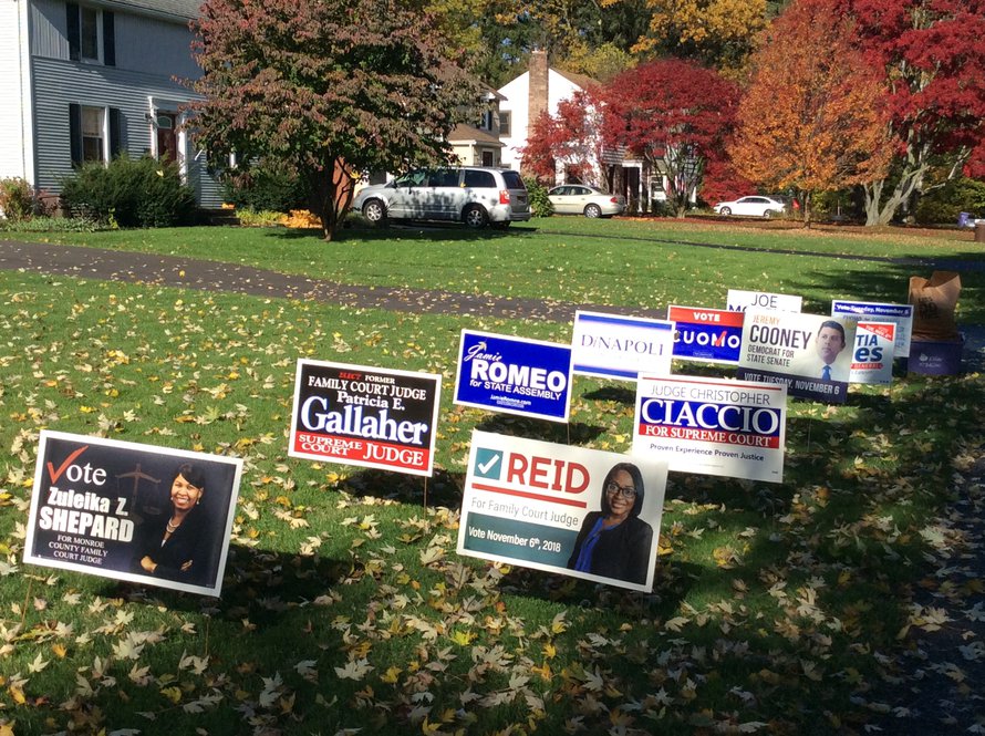 Loistava päivä kävellä vaaliuurnille kullankeltaisten ja tummanpunaisten vaahteroiden reunustamaa reittiä keskisuuren kaupungin esikaupungissa, New Yorkin valtion pohjoisosassa!