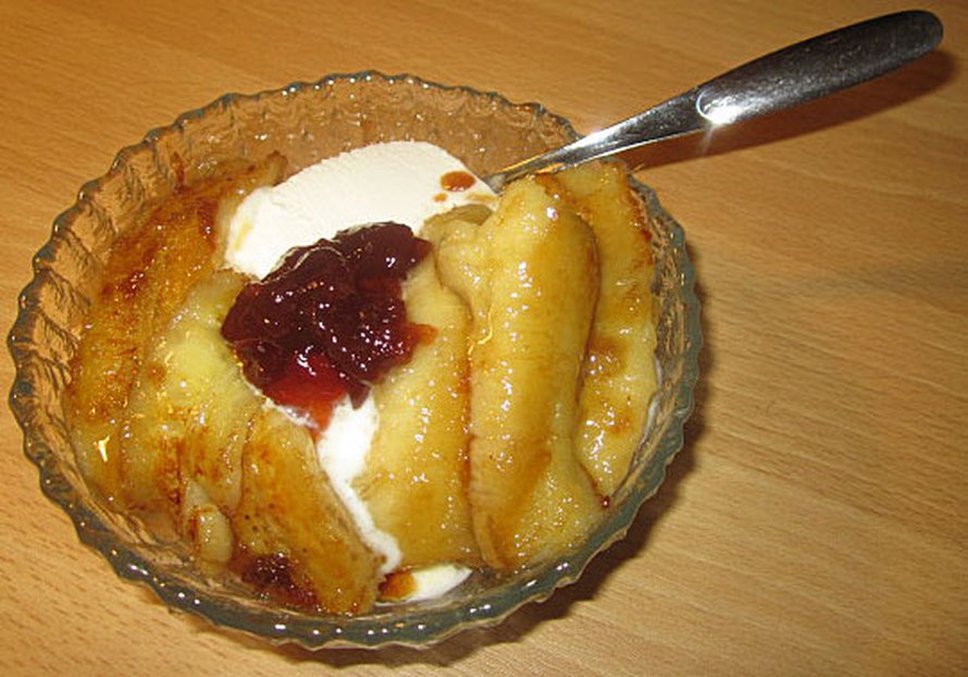 Banaanit mustuu ja vanhenee meillä ”vahingossa”. Ne on sitten pakko paistaa viipaleina voin ja fariinisokerin kera. On muuten hyvää jäätelön kera. Hilloa voi vielä lisätä tarvittaessa.
