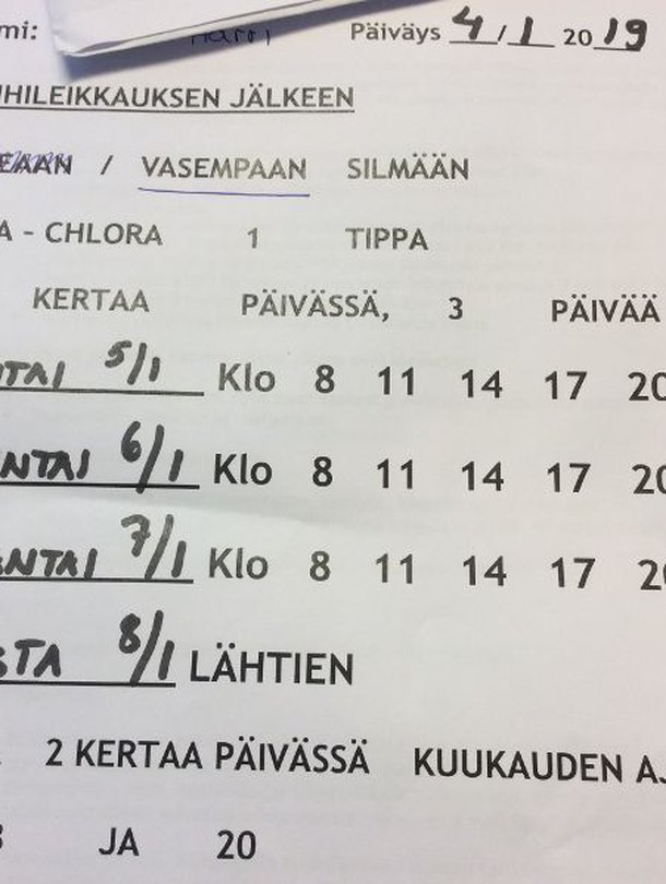Elämän pärskeet Elämän pärskeet Tänään on miehelleni tehty kaihileikkaus Vuosi vaihtui myrskyisässä säässä koko maassa. Tuulen voimakkuus oli paikoittain ennätyslukemissa ja lunta...
