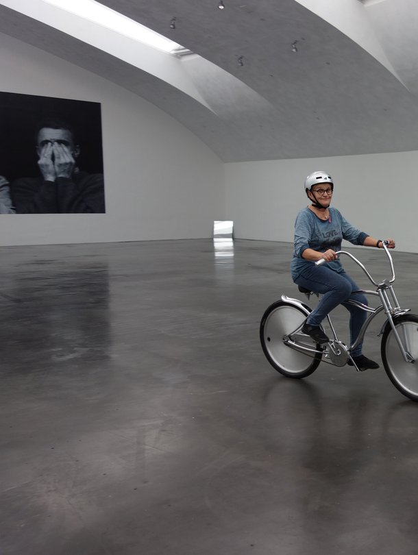 Anjakaarina Anjakaarina Kävin pyöräilemässä Kiasmassa Mitä nämä monet kromia hohtavat pyörät täällä näyttelyhallissa tekevät? Aijaa, että niillä saa ihan ruveta...