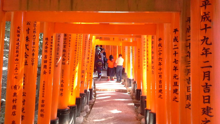 Käymme kuuluisalla Inari-vuorella, jossa polku kulkee kilometrien matkan oranssien Torii-porttien läpi. Fushimi-Inarin pyhäkkö on kuuluisin vuoren pyhäköistä ja se sekä oranssit torii-portit kettuveistoksineen ovat turistien suosituin kohde. Vähän tunnelmaa haittaa turistien jatkuva jono vuorelle noustessa, mutta illalla palatessa auringon laskiessa voi  saavuttaa maagisen tunnelman, kun viileän varjoisan lehvistön varjosta kuuluu huilumainen lintujen kutsuääni ja värähdän kivisen, oranssikauluksisen ketun ovelaa katsetta.