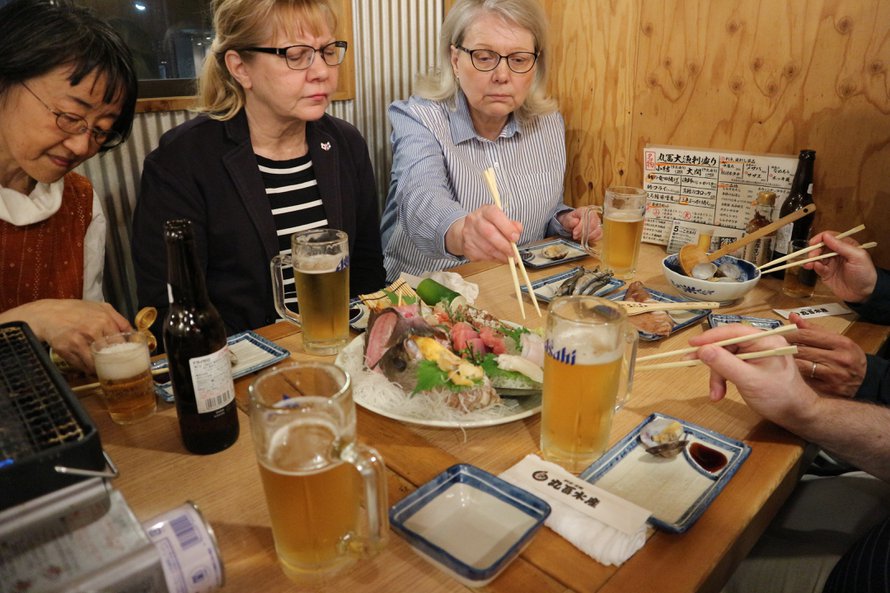Seuraavana päivänä vierailemme mm. Asakusassa, Tokion vanhalla alueella, jossa on yhä säilynyt perinteisiä rakennuksia. Alue on nykyisin raskaasti turistien kansoittama. Lähellä on myös kuuluisa Ueno-puisto, joka on tunnettu kirsikankukistaan ja siellä paikalliset viettävät Hanamia, eli kirsikankukka-aikaa syöden ja juoden. Maassa, yleensä sinisten muovipeitteiden päällä, istuskelee iloisia ryhmiä nuorisoa ja työkavereita.