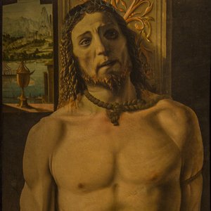 Tämä hyvin erikoinen, tuntemattoman tekijän Krusifiksi 1500-luvulta, Espanjasta kertoo siitä, kuinka kulttuurit kohtaavat. Espanjalaiset olivat menneet Amerikkaan. Laivojen mukana meni myös evankelistoja, jotka kohtasivat uudella mantereella intiaanien uskonnon. Kuvassa näemme Kristuksen, joka on kuin puunrungon sisällä. Puunrungossa on aukkoja, joista erotamme Kristuksen ristiä kantaessaan ja kaatuessaan rikkoontuneet, veriset polvet. Alhaalla näkyy hänen ristiinnaulittu toinen jalkateränsä. Vieressä, värikkäässä asussaan on Amerikan intiaani sellaisena, kuin espanjalaiset heidät näkivät. Evankelioimistyö on onnistunut. Hän kunnioittaa vanhan toteeminpuun asemesta Kristusta, joka paljastuu toteemipuun sisältä. Värikkäät linnut paitsi tasapainottavat sommitelmaa toistaen samoja värejä kuin intiaanin asussa on, myös muistuttavat evankelistojen työstä Jumalan sanan levittäjänä. Lintu on ihmisen ja Jumalan välisen sanansaattamisen symboli.