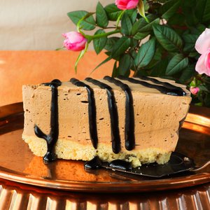 Ennen tarjoilua levystä vain leikataan neliöt irti tarjottavaksi ja koristellaan vielä vadelmahillolla ja sokerivesikuorrutuksella.
