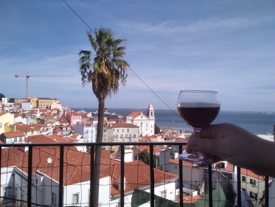 Illalla mene Mourarian kaupunginosan näköalapaikalle katsomaan Lissabonin iltavaloja kitaransoiton tahtiin. Illasta aukion perheravintolassa.