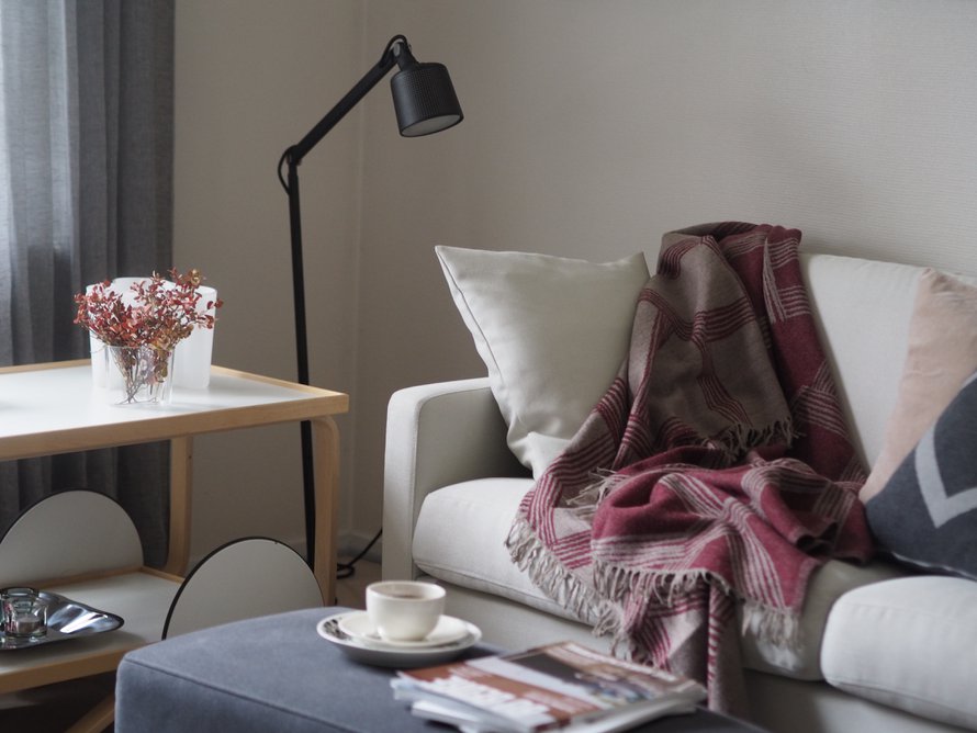 I had a lovely visit to Copenhagen and I am writing about the Hygge feelings of the danish people. But this post is also about the Finnish weaving mill Lapuan Kankurit and about their products. I have possibility to co-operation with them now and in the photos of this post you see one of their blankets in my favorite color.