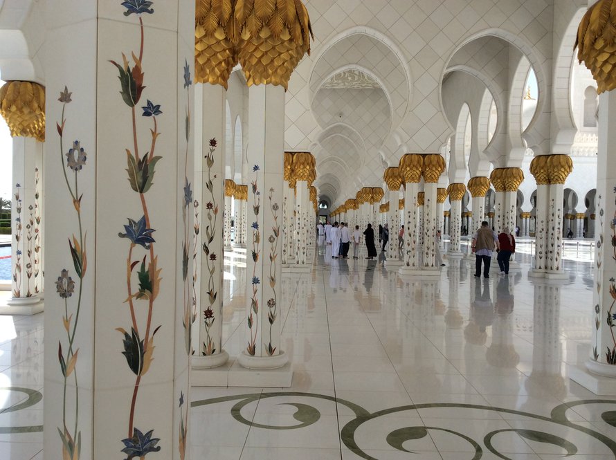 Sheiiki Zayedin Moskeija on myös todella kaunis rakennus, missä on käytetty erilaisia kiviä, koristelujen materiaalina ja Swarovskin kristallikruunut sekä rukoushuoneen kultaukset ovat uskomattomat. Muistelimme siellä käyntejämme, Irakin Kerbalan moskeijassa, mikä on kultaa ja mosaiikkia, mutta hyvin toisenlainen kuin tämä. Ehdottomasti kannattaa käydä katsomassa Abu Dhabiin moskeija. Sopivan vaatetuksen saa sisälle mennessä ja kohteeseen ei ole pääsymaksua. Taksi oli 50 dirhamin luokkaa keskustasta.