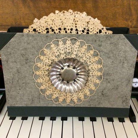 Helena myy hyvin edullisesti, esimerkiksi kauniit vanhat pitsiliinat A4-kokoisessa muovissa kolmella eurolla. Hän aikoo tulla vielä ensi vuonna messuille myymään, mutta ei sitten enää.