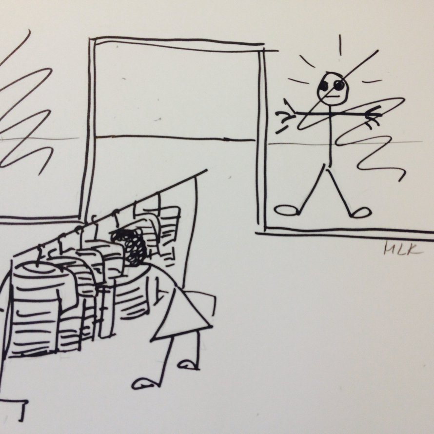 Muistaakseni Marimekon myymälässä, jonka seinät olivat lasia ja keskellä oviaukko.Satuin juuri olemaan lähellä oviaukkoa, kun eräs mies tuli reippaasti putiikkiin ja käveli suoraan päin lasia. Oviaukko oli vieressä !