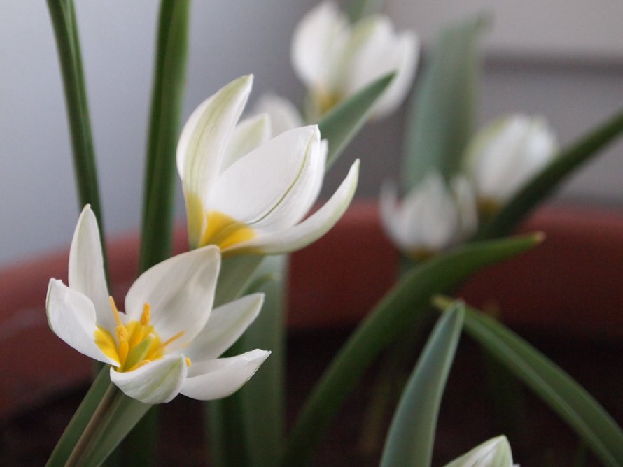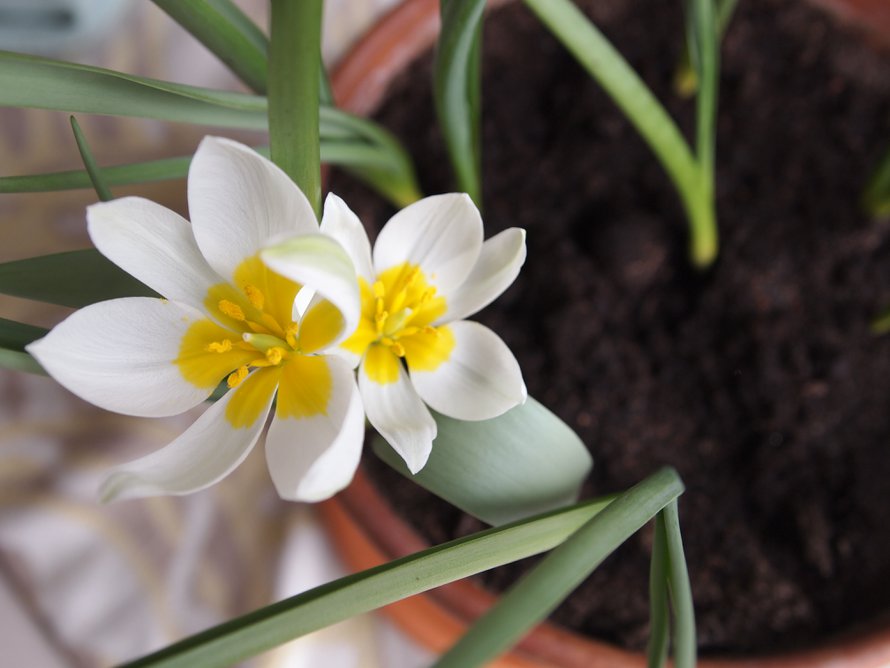 Kevättähdet ovat kukkineet jo reilun viikon. Ne ovat huomattavasti kestävämpiä kukkijoita kuin matalat tulppaanini, mutta luulen, että ne sopivat paremmin ruohikolle kuin parvekeruukkuihin. Vahamaiset kukat eivät ole lähietäisyydeltä yhtä sykähdyttäviä kuin kauempaa katsoen.