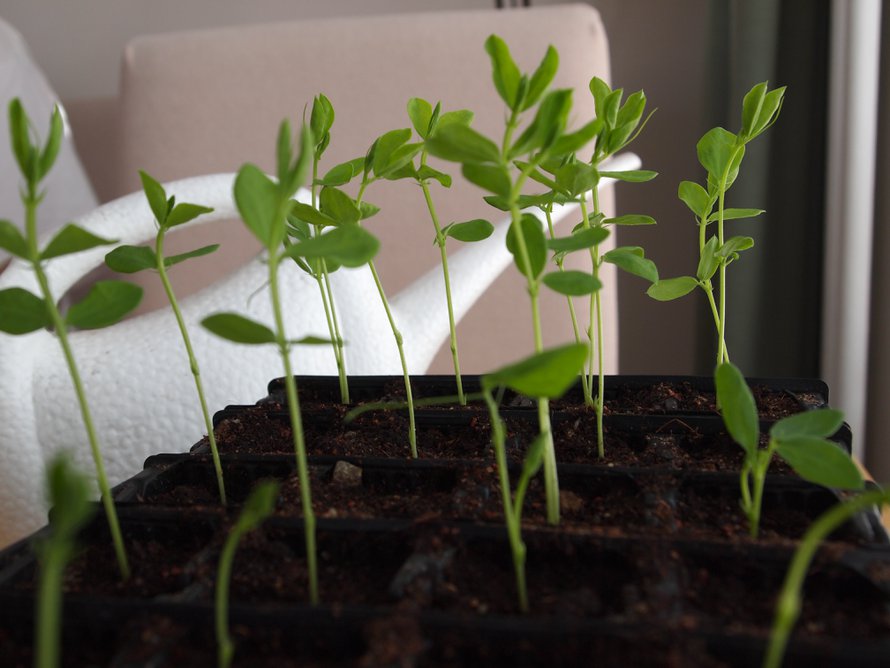 Siirsin kaksi viikkoa sitten sinivaulan ja mansikan taimet Rootrainersista erillisiin ruukkuihin ja kylvin tilalle hajuherneet. Toinen lajike, kaksivärinen Villa Roma, iti jo viikossa ja on nyt sen kokoista, että taimet voisi istuttaa lopulliseen paikkaansa vaikka jo tänään. Yllättäen yksivärinen Purple Cupid oli olennaisesti hitaampi. Molemmat itivät kuitenkin erittäin hyvin. Villa Romaa on 12 tainta ja Purple Cupidia 13.
