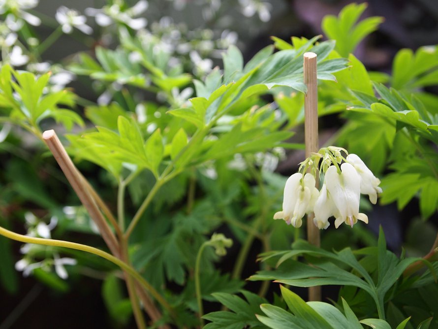 Sivuseinän Ektorp-tangoille olen istuttanut valkoisia ja sininaamaisia pikkuorvokkeja. Viime kesänä näissä ruokailuvälineruukuissa röyhysi ruusupapua, mutta olen päätynyt siihen, että paikka sopii parhaiten orvokeille.
