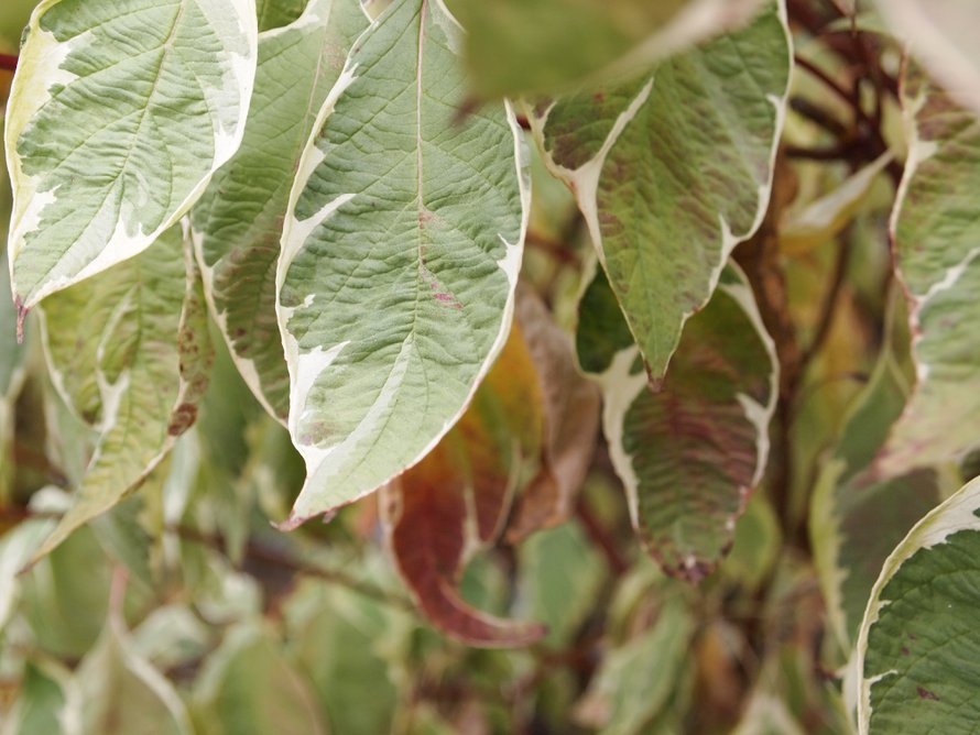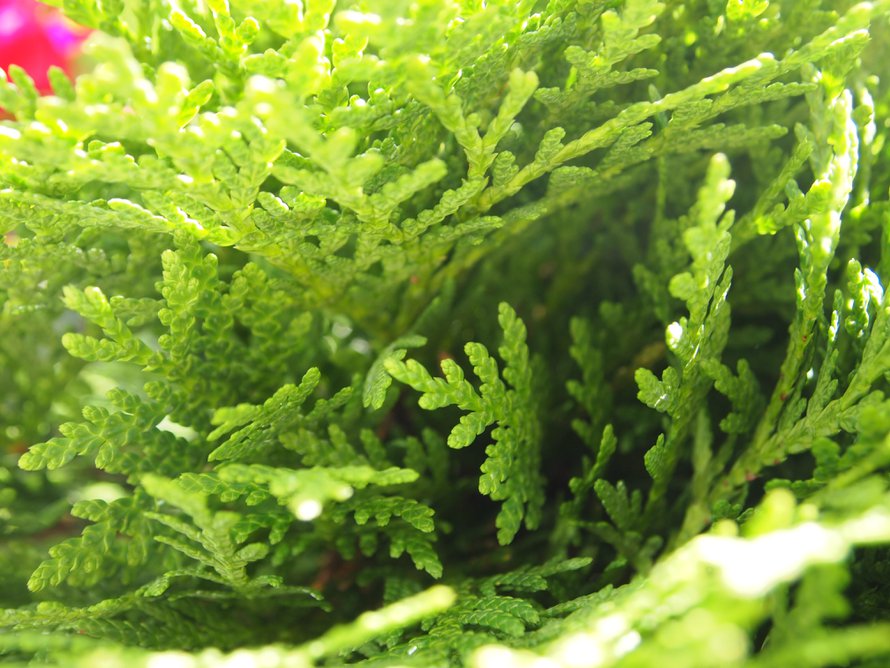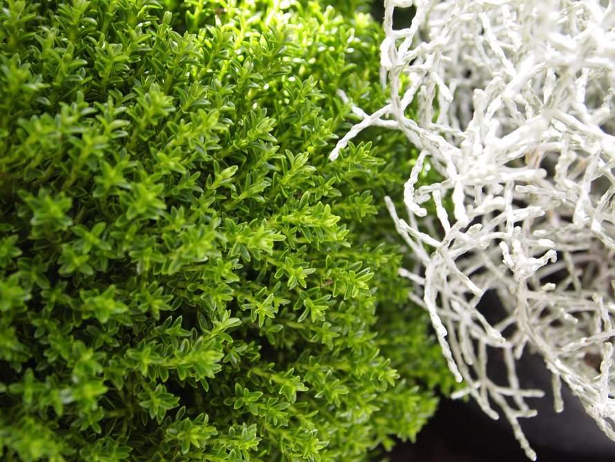 Päivän kuvat: Yksityiskohtia syysistutuksestani: tuija, tädyke, hopealanka ja valkokuusi.