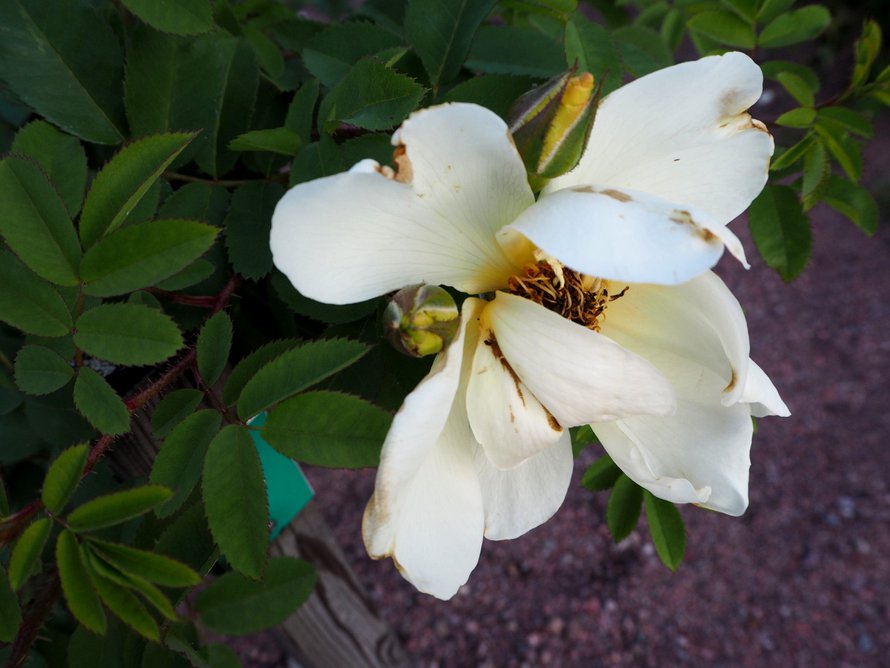 Päivän kuvat: Tykkään myös kuihtuvista ruusuista. Keltainen ruusu on Aicha, muiden nimistä minulla ei ole havaintoa.