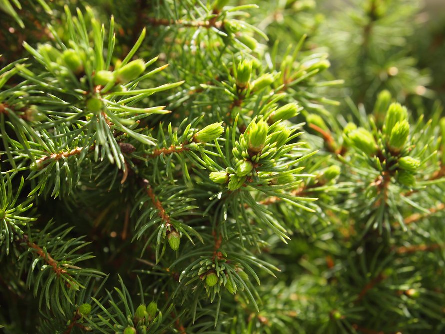 Miellyttävin yllätys odotti parvekkeella. Kartiovalkokuusen kerkät olivat kasvaneet edelleen. Koko havupuu oli vaaleanvihreä, ihanan pehmeä ja pörröinen!