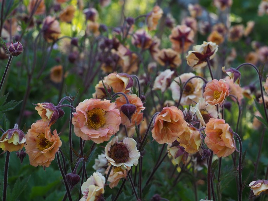 En ostanut kasveja, mutta siirsin. Irrotin muista kukkapenkeistä sormustinkukan ja koristeporkkana Daran taimia ja sijoitin ne penkin takaosaan. Lisäksi siirsin pienen syyshortensia Whitelightin ruusupenkistä lähelle pallohortensioita paikkaan, josta poistin punakellukat. Penkin leveään päätyyn istutin tällä kertaa kesäleimuja, koska niille ei ollut muutakaan paikkaa. Kompaktit samettikukat sopivat siihen paremmin. Tässä kuitenkin kesäleimut Cherry Caramel: