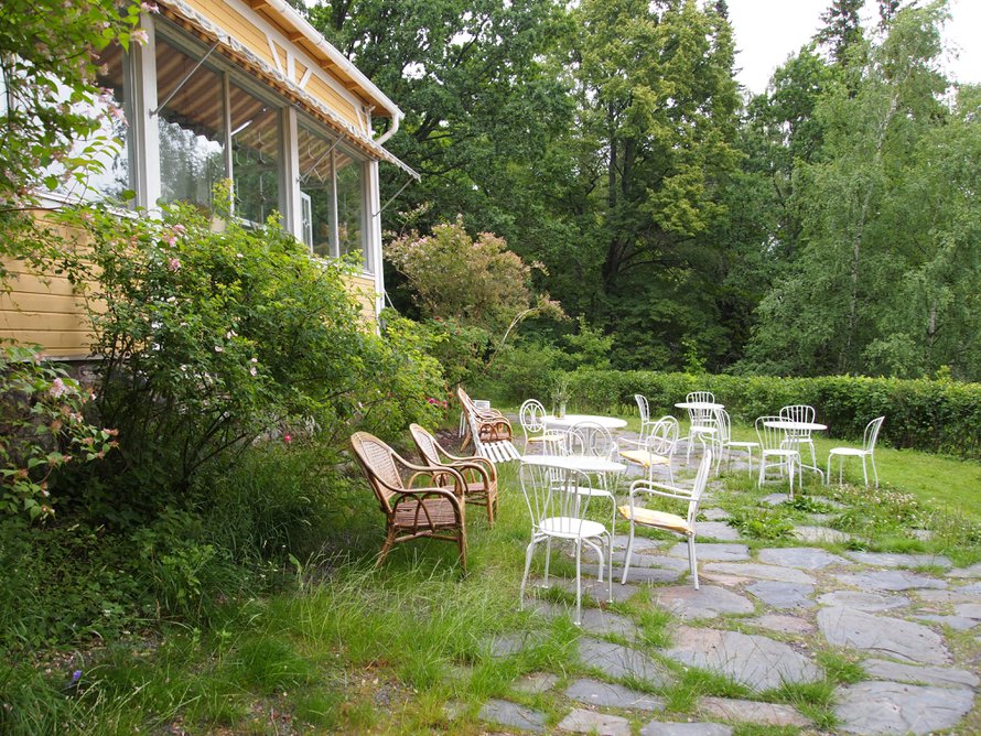 Kun kaarsimme soratietä Kuuvannokan parkkipaikalle, huomasimme uuden kyltin. Kahvila Villa Kuuva. Tännepäin! Kapean tien ja mutkan takaa löytyi villiintynyt vanha puutarha ja keltainen puuhuvila, jossa toimii kahvila jo toista kesää. Hieno merinäköala ilman kävelyä. Mikä suloinen kompromissi!