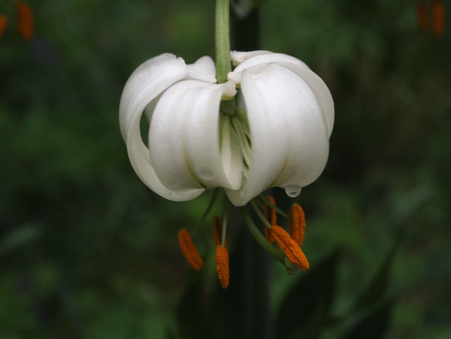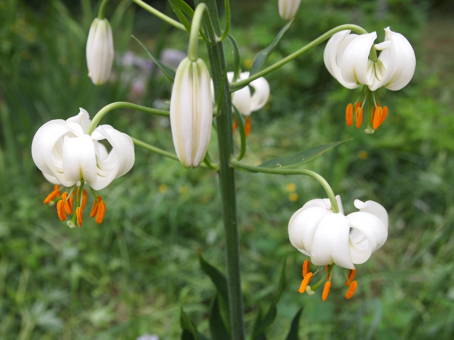 Lasikuistin ovenpielessä kasvaa iso, kaunis kellokuusama - en tunnistanut sitä, vaan tein lajinmäärityksen myöhemmin kotona. Ruusuja löysin kukassa kolmea lajia. Myös kuunliljat ja varjoliljat ovat epäilemättä vanhaa kantaa.