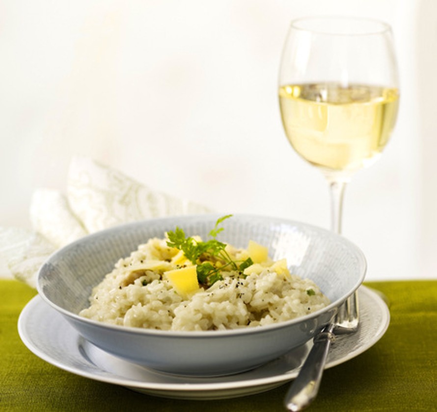 Tee sienirisotto! Maku ja rakenne ovat kuin italialaisen risoton, vaikka ohjeessa ei ole käytetty nokarettakaan voita. Seurakseen risotto vaatii vain vihersalaatin, juomaksi Salme tarjoaa raikasta valkoviiniä.
