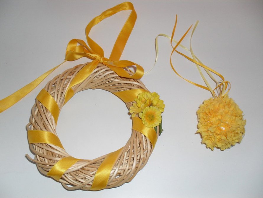 Itsetehdyt pääsiäiskranssi ja -muna.