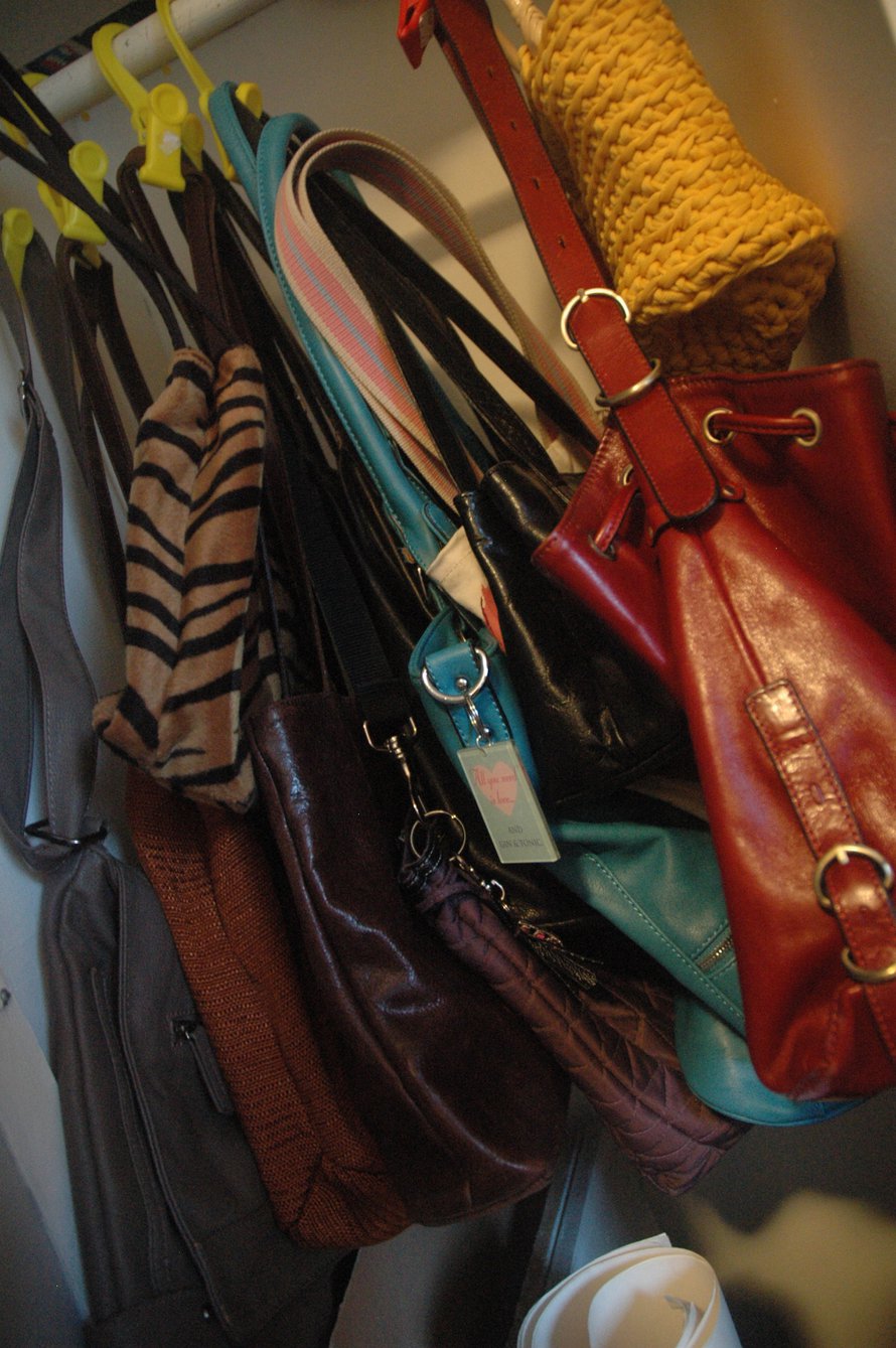Ei kovin havainnollinen, mutta minulle kuva on riemastuttava! Laukkuja on runsaasti joka lähtöön, erikokoisia, eri värisiä, monen muotoisia ja kaikkia materiaaleja.