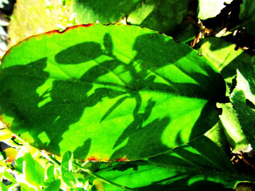 Aurinkoa ja varjoa vuorenkilven lehdellä