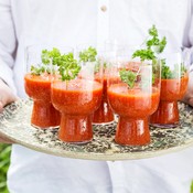 Ruoka 29.6.2018 Ihana gazpachokeitto toimii kesäillan alkumaljana Vaalea mallasleipä sakeuttaa tomaattisen gazpachokeiton.