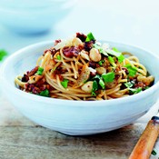 Ruoka 24.3.2017 Helppo ja nopea pähkinäkastike pastalle Täysjyväpastan kaveriksi sopii manteleista ja pähkinöistä tehty proteiinipitoinen kastike.