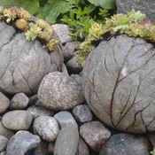 Käsityöt 10.7.2016 Tee raparperinlehtien avulla betoniset kaalinpäät! Jyväskyläläinen Eeva Flyktman on taiteillut upeat "kaalinpäät" betonista puutarhaan kukkapallosiksi. Innostu sinäkin...