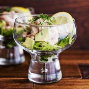 Ruoka 18.5.2015 Katkarapu-cocktail Avokadon ja katkaravun liittoa ei voi vastustaa, varsinkaan tällaisessa cocktailissa.