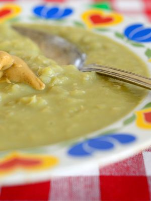 Tuorehernekeitto ja piparjuurijogurtti
