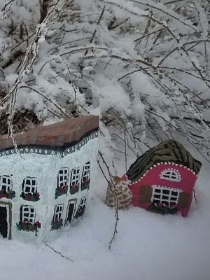 Sirkku tuunaa kiuaskivistä ja tiilistä menninkäistaloja