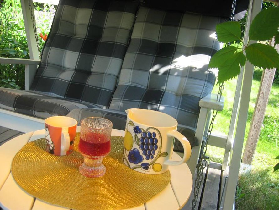 - Rauhallisia luku, ristikko ja kahvihetkiä kotipihan keinussa